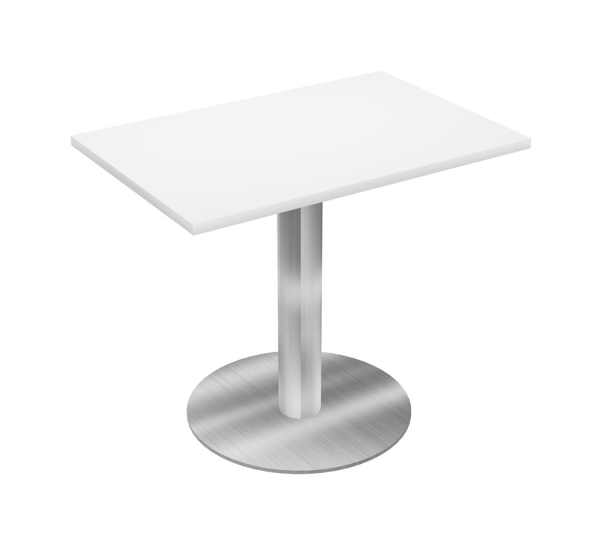 Modular Office, Restaurant, Cafeteria, Lunch Room & Food Service Table With White Tabletop & Chrome Round Leg & Chrome Round Base Plate