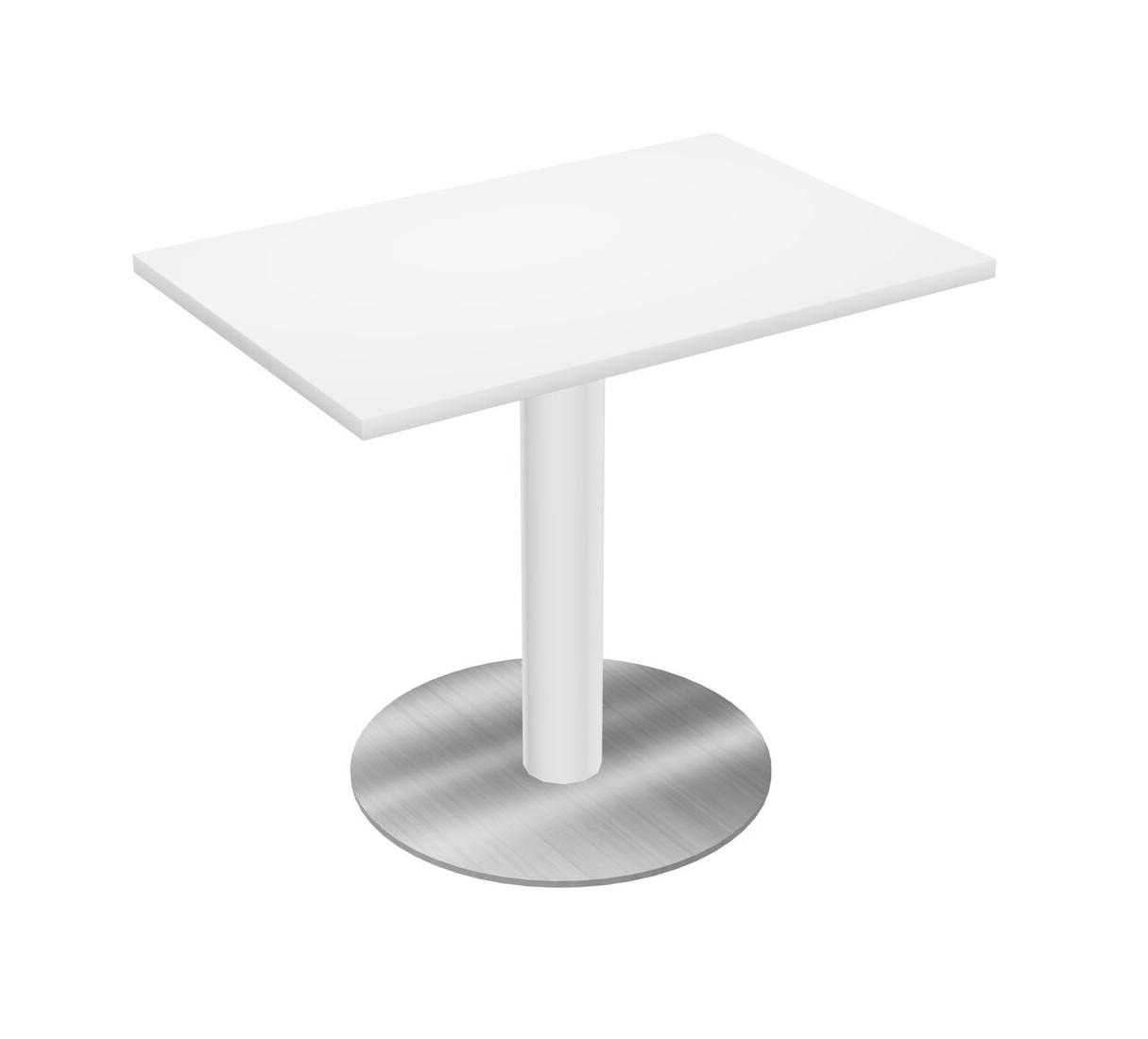 Modular Office, Restaurant, Cafeteria, Lunch Room & Food Service Table With White Tabletop & White Round Leg & Chrome Round Base Plate