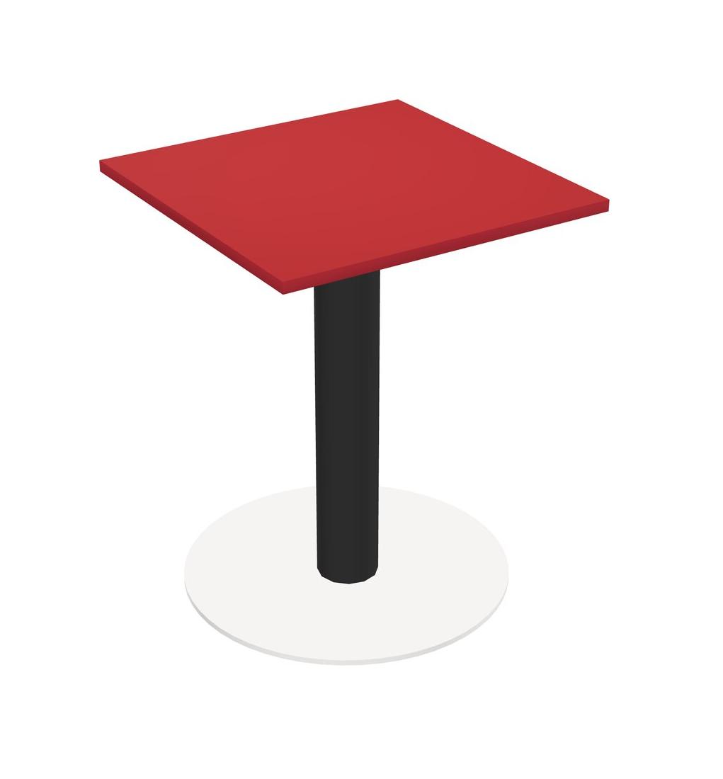 Modular Office, Restaurant, Cafeteria, Lunch Room & Food Service Table With Prism Red Tabletop & Black Round Leg & White Round Base Plate