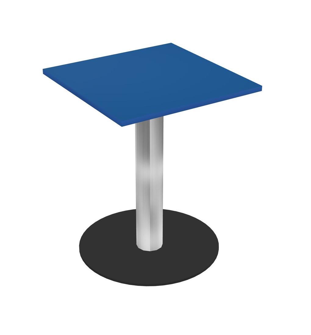 Modular Office, Restaurant, Cafeteria, Lunch Room & Food Service Table With Prism Blue Tabletop & Chrome Round Leg & Black Round Base Plate