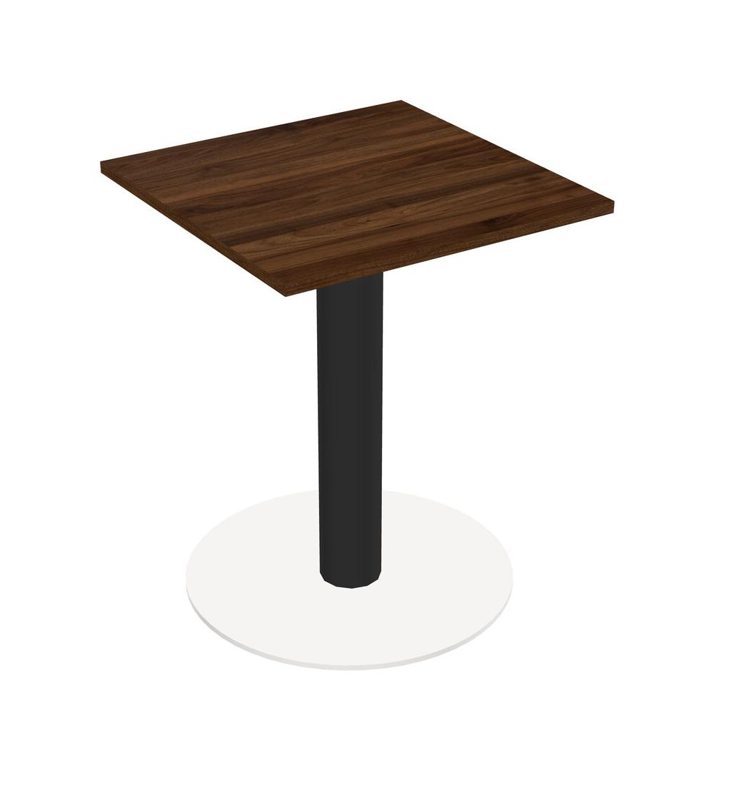 Modular Office, Restaurant, Cafeteria, Lunch Room & Food Service Table With Columbia Walnut Tabletop & Black Round Leg & White Round Base Plate