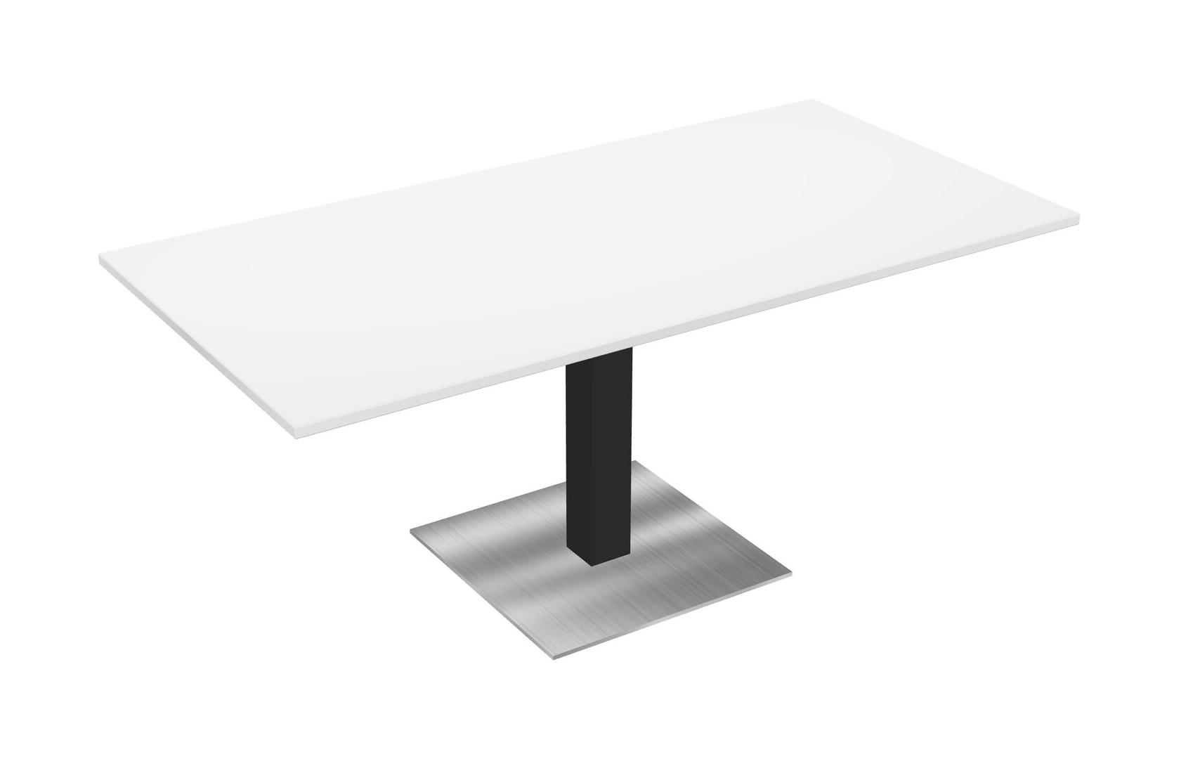 Modular Office, Restaurant, Cafeteria, Lunch Room & Food Service Table With White Tabletop & Black Square Leg & Chrome Square Base Plate