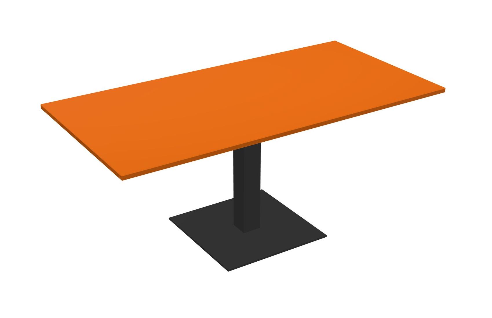 Modular Office, Restaurant, Cafeteria, Lunch Room & Food Service Table With Orange Tabletop & Black Square Leg & Black Square Base Plate