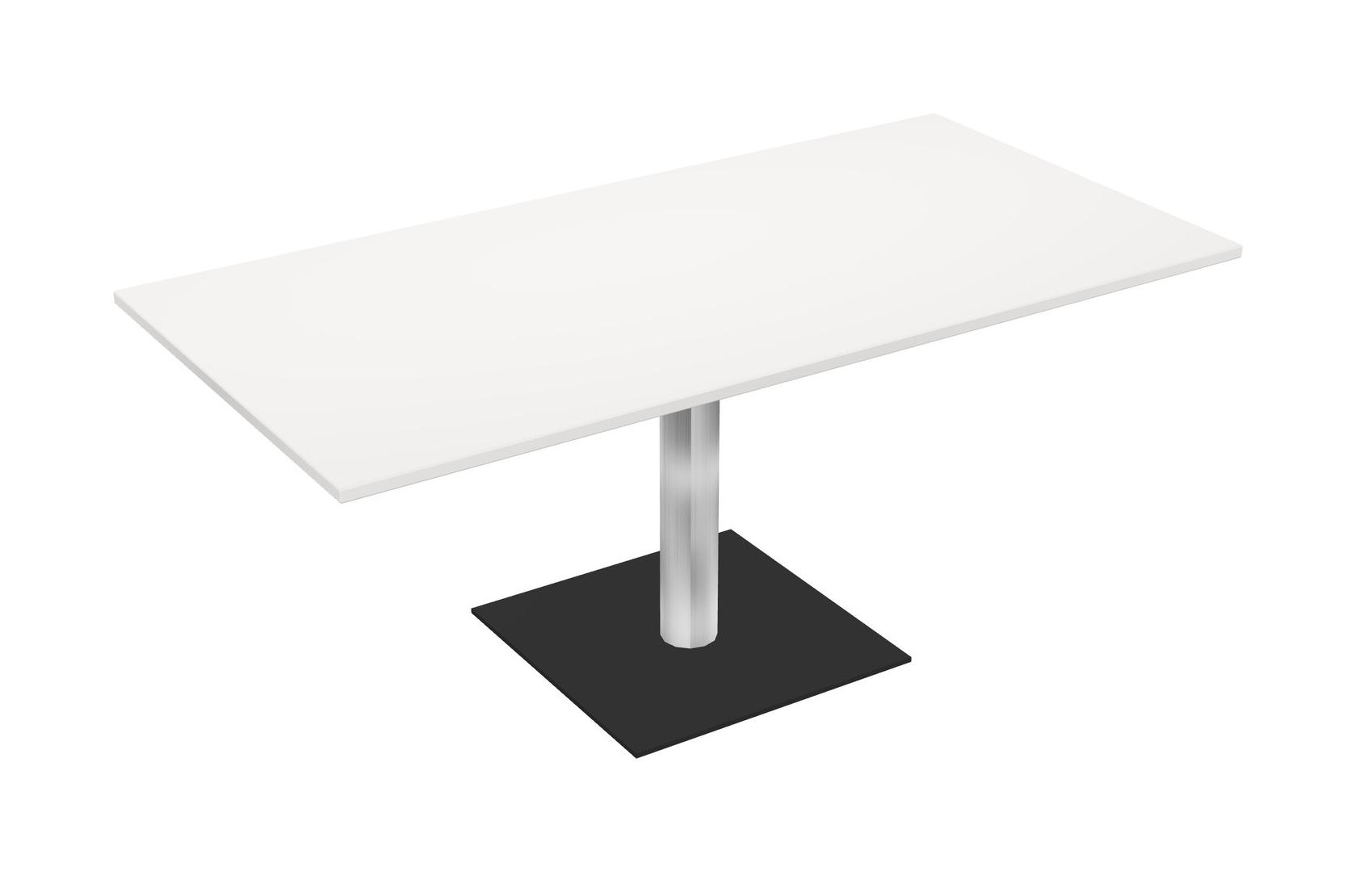 Modular Office, Restaurant, Cafeteria, Lunch Room & Food Service Table With White Tabletop & Chrome Round Leg & Black Square Base Plate