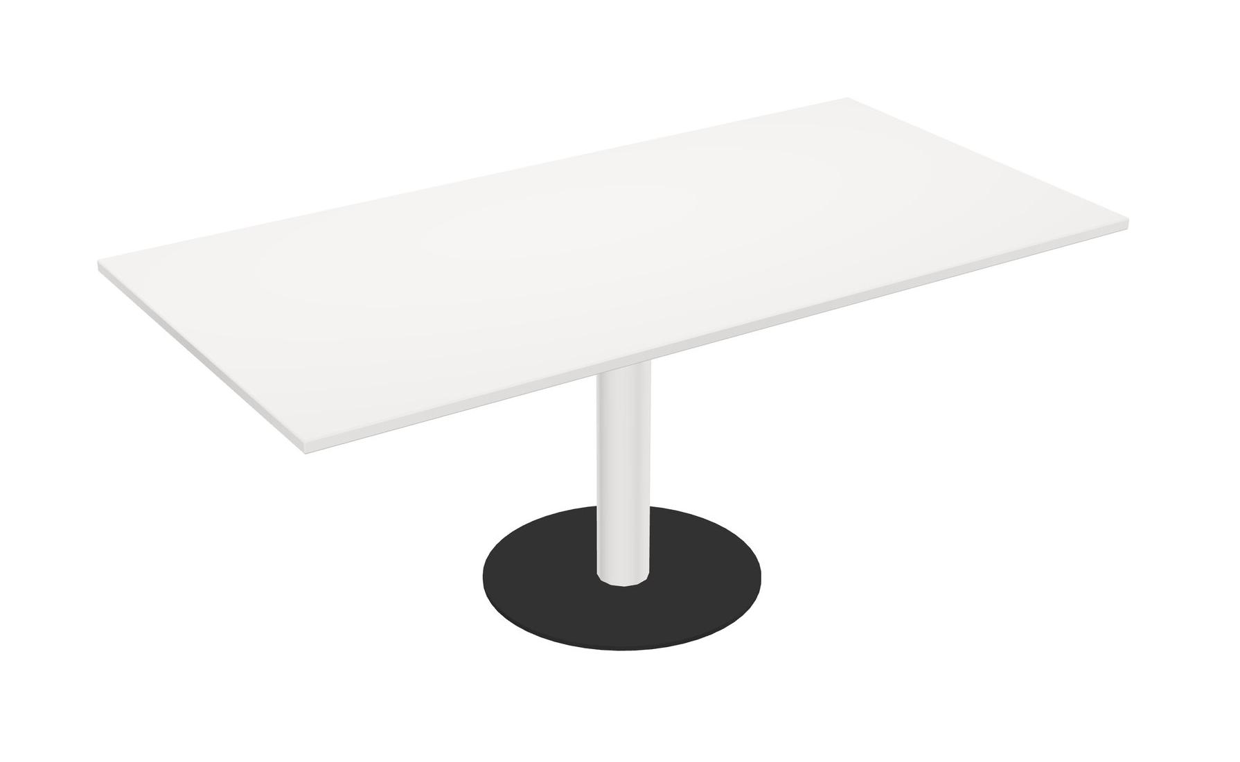 Modular Office, Restaurant, Cafeteria, Lunch Room & Food Service Table With White Tabletop & White Round Leg & Black Round Base Plate