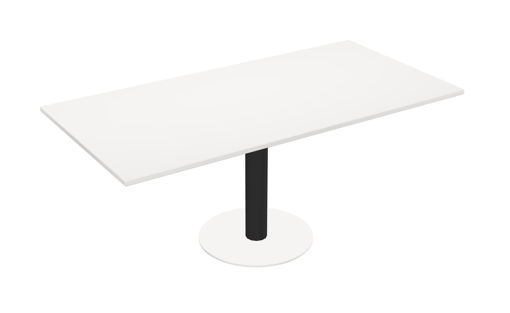 Modular Office, Restaurant, Cafeteria, Lunch Room & Food Service Table With White Tabletop & Black Round Leg & White Round Base Plate