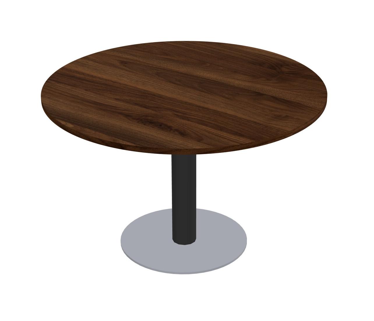 Modular Office, Restaurant, Cafeteria, Lunch Room & Food Service Table With Columbia Walnut Tabletop & Black Round Leg & Grey Round Base Plate