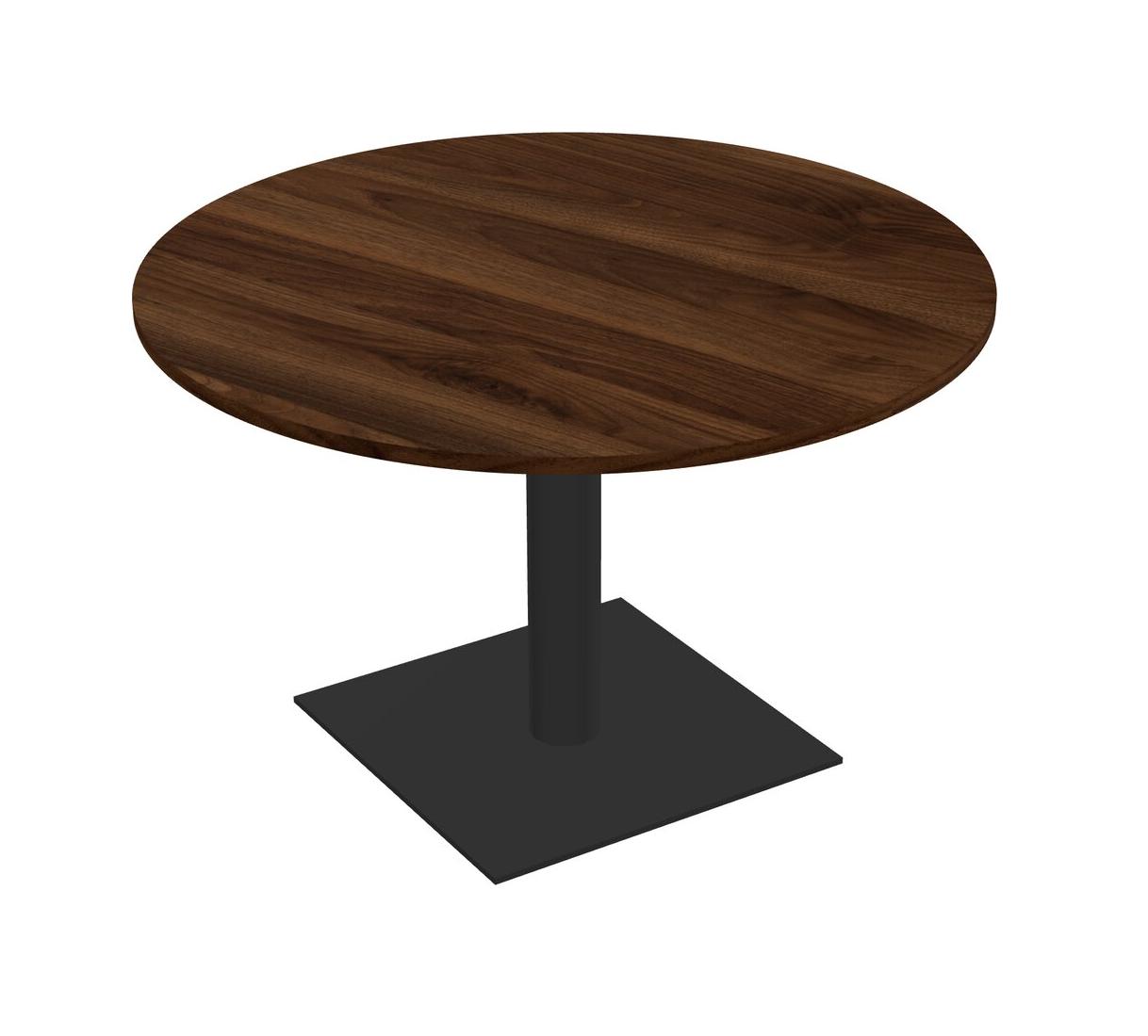 Modular Office, Restaurant, Cafeteria, Lunch Room & Food Service Table With Columbia Walnut Tabletop & Black Round Leg & Black Square Base Plate