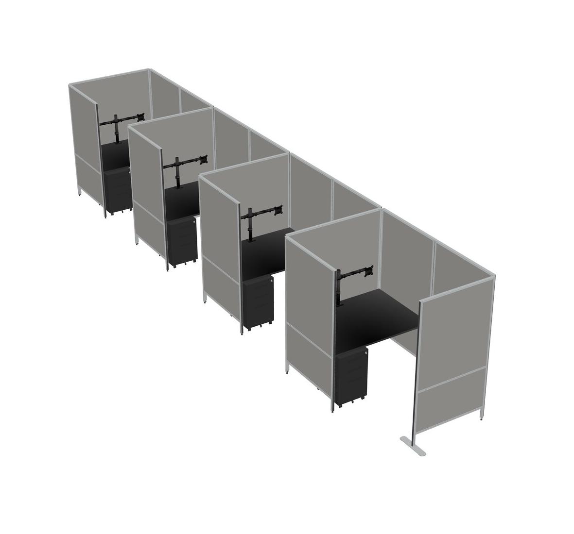 Black Small Private Panel System + Panel System + Metal Mobile Drawers