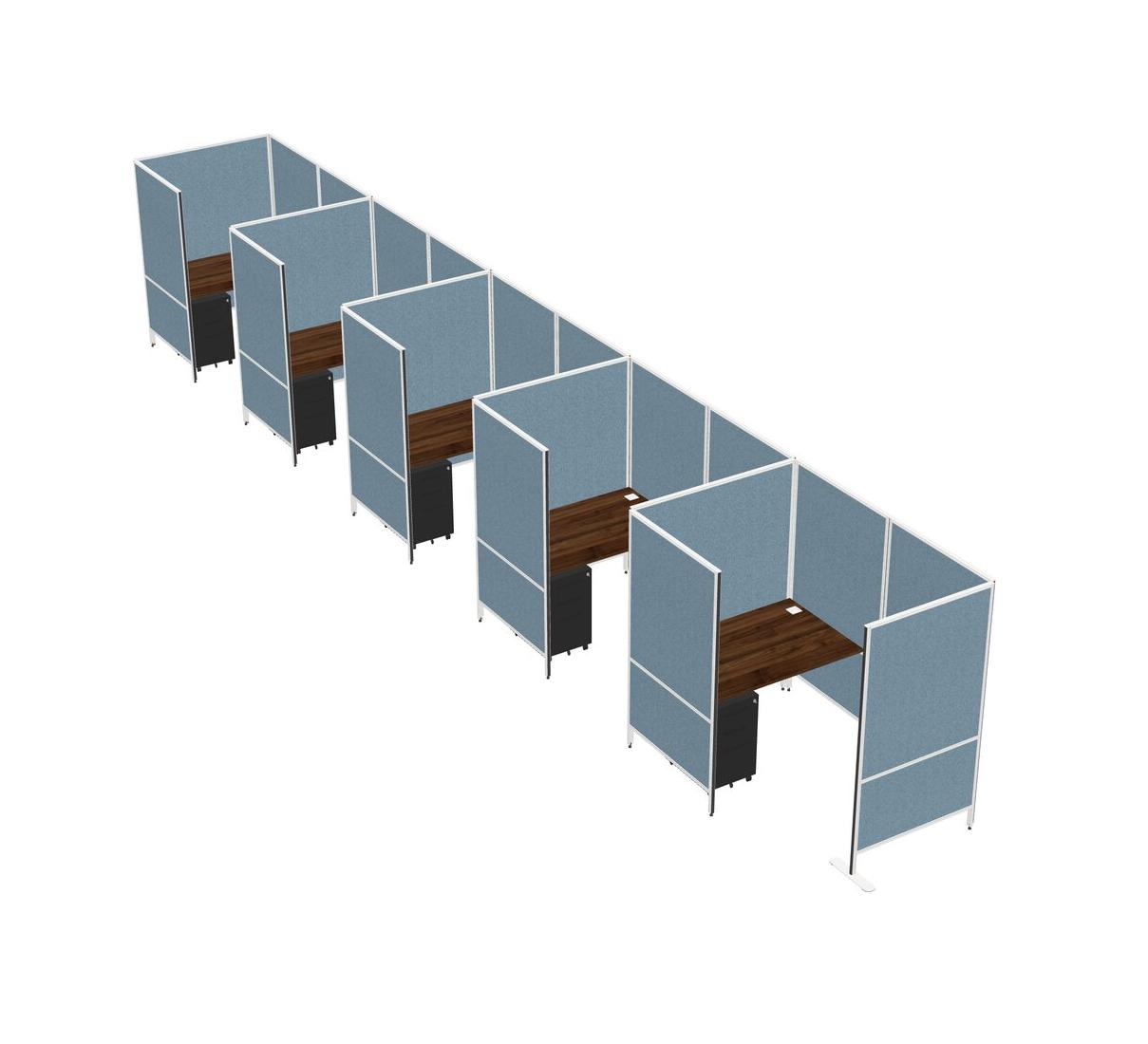 Columbia Walnut Small Private Panel System + Panel System + Metal Mobile Drawers
