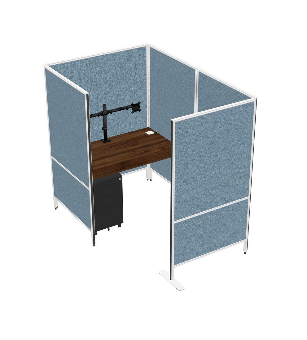 Columbia Walnut Small Private Panel System + Metal Mobile Drawers