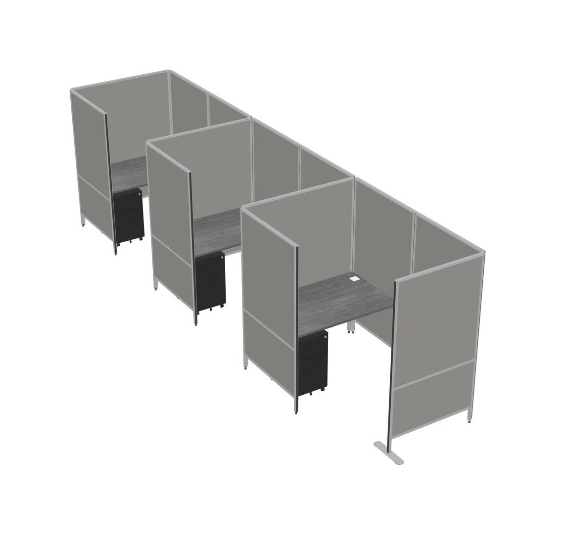 Grey Small Private Panel System + Panel System + Metal Mobile Drawers