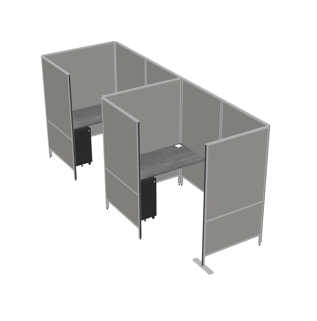 Grey Small Private Panel System + Panel System + Metal Mobile Drawers