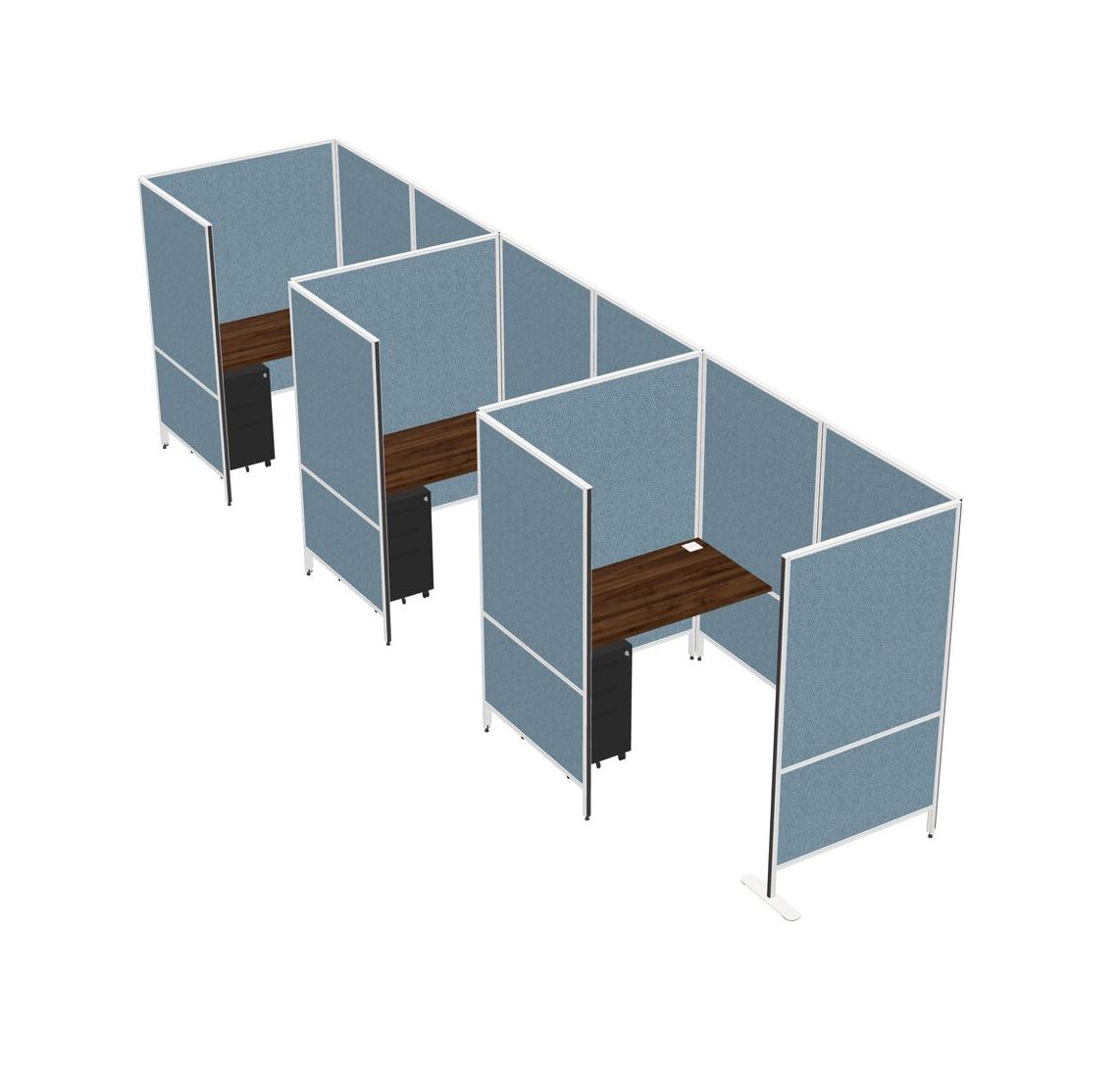 Columbia Walnut Small Private Panel System + Panel System + Metal Mobile Drawers
