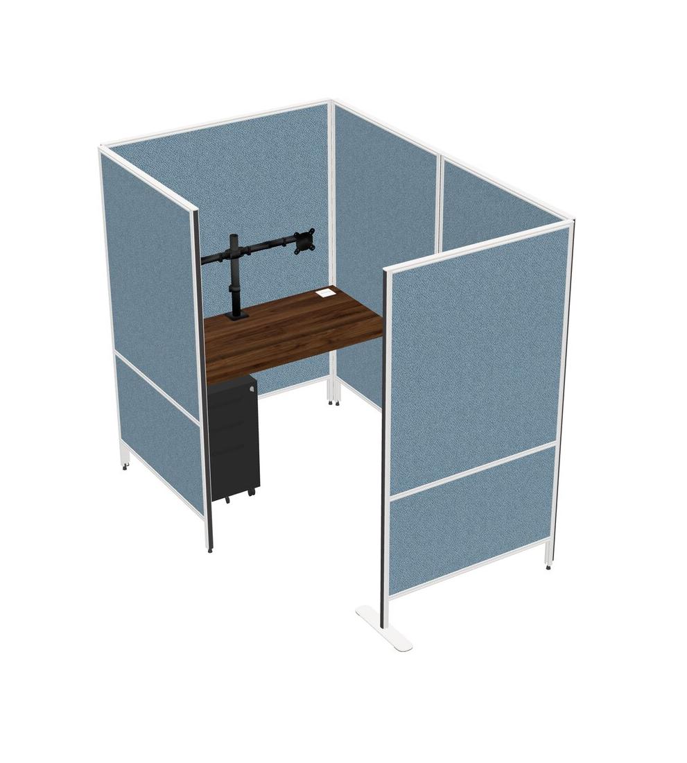 Columbia Walnut Small Private Panel System + Metal Mobile Drawers