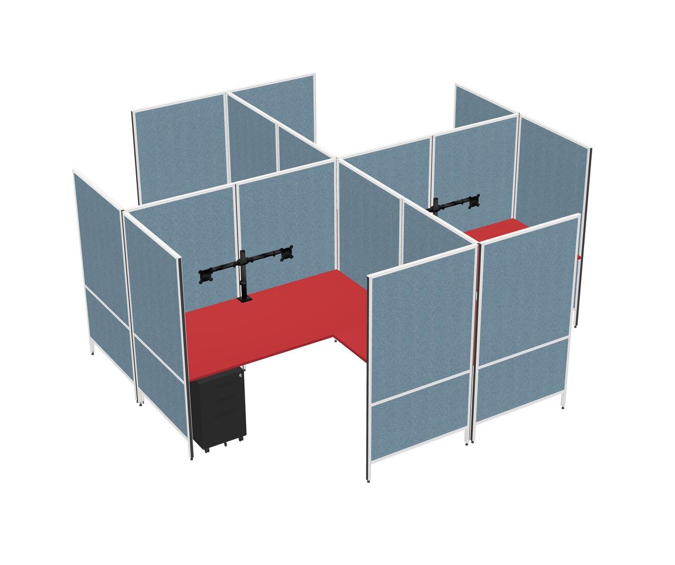 Prism Red Modern Modular Quad L-Shaped Panel System + Metal Mobile Drawers + Monitor Arm (double Arms)
