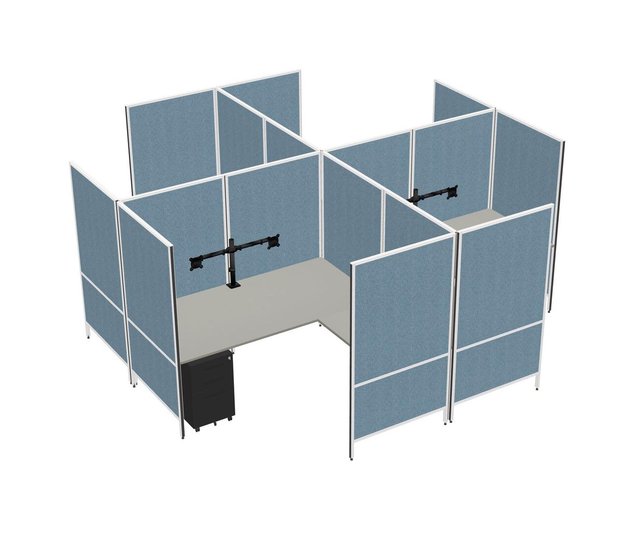 Grey Shadows Modern Modular Quad L-Shaped Panel System + Metal Mobile Drawers + Monitor Arm (double Arms)