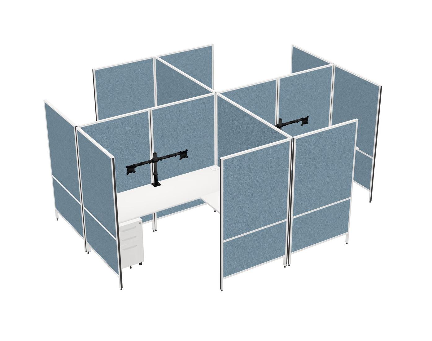 White Modern Modular Quad L-Shaped Panel System + Metal Mobile Drawers + Monitor Arm (double Arms)