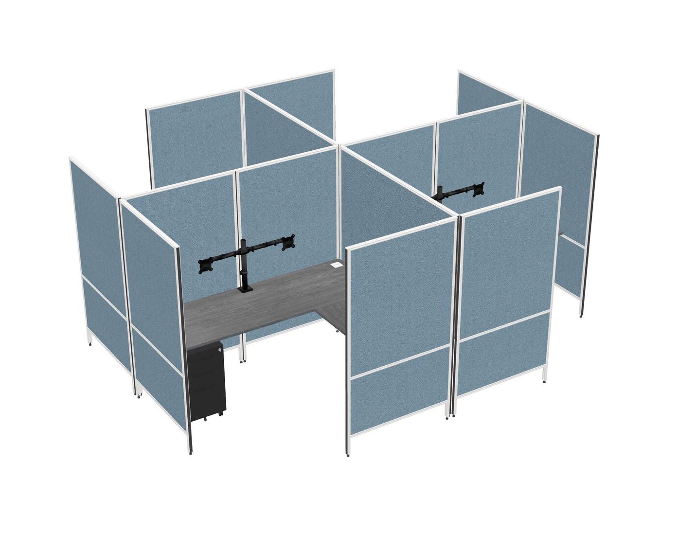 Grey Modern Modular Quad L-Shaped Panel System + Metal Mobile Drawers + Monitor Arm (double Arms)