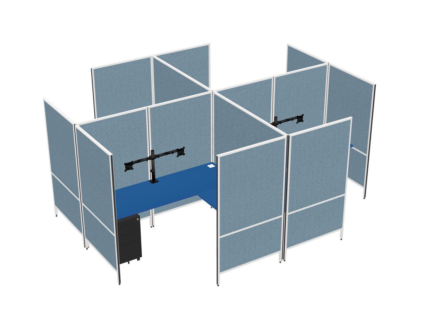 Prism Blue Modern Modular Quad L-Shaped Panel System + Metal Mobile Drawers + Monitor Arm (double Arms)