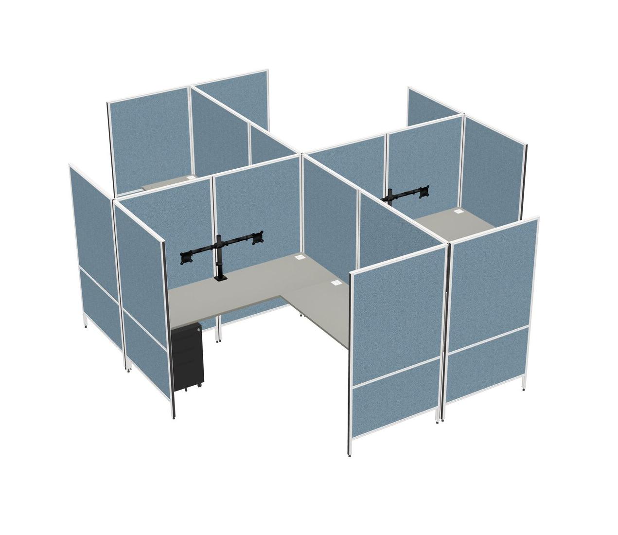 Grey Shadows Modern Modular Quad L-Shaped Panel System + Metal Mobile Drawers + Monitor Arm (double Arms)