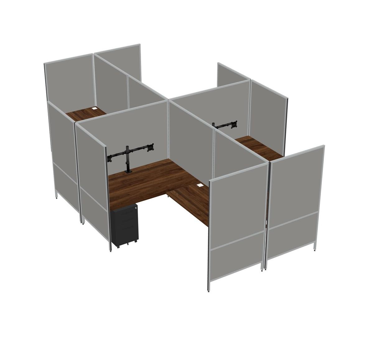 Columbia Walnut Modern Modular Quad L-Shaped Panel System + Metal Mobile Drawers + Monitor Arm (double Arms)