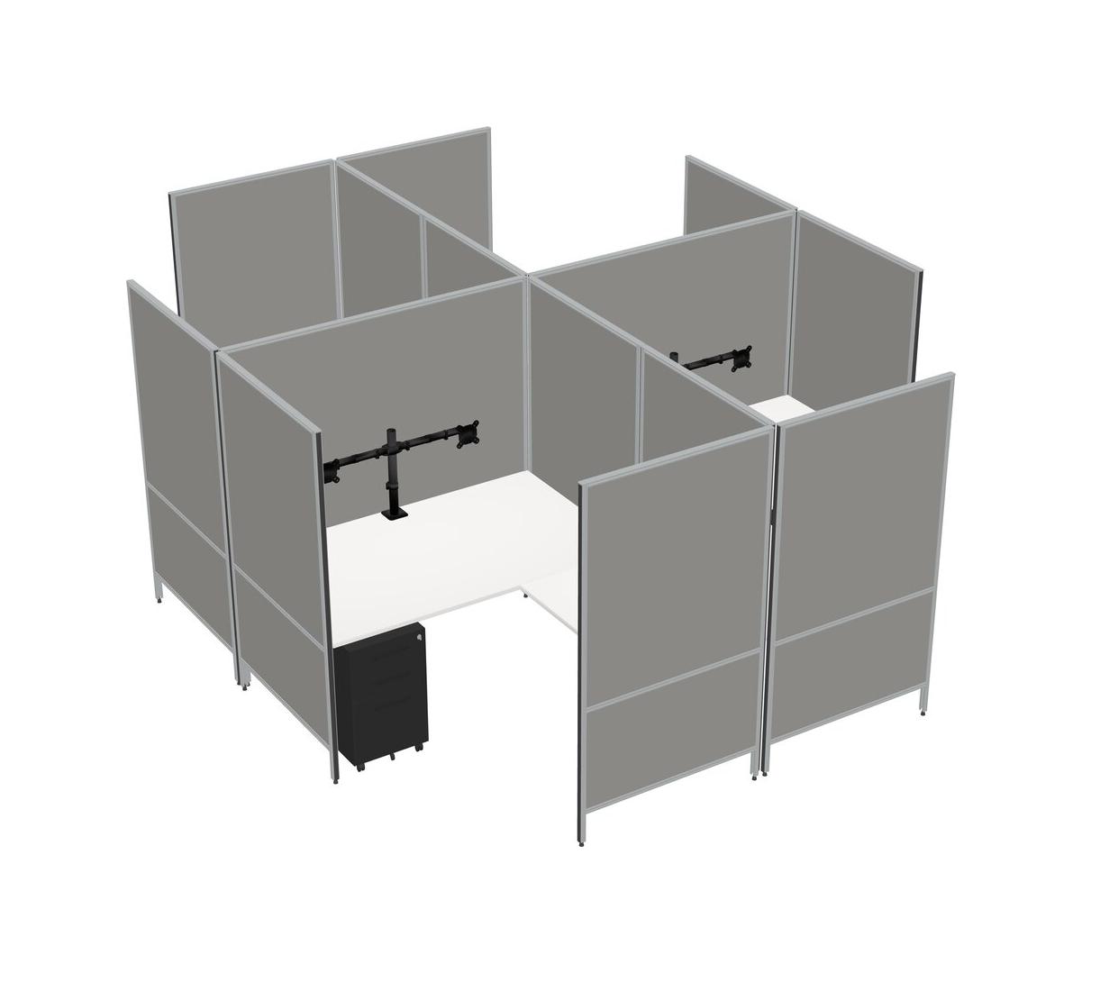 White Modern Modular Quad L-Shaped Panel System + Metal Mobile Drawers + Monitor Arm (double Arms)