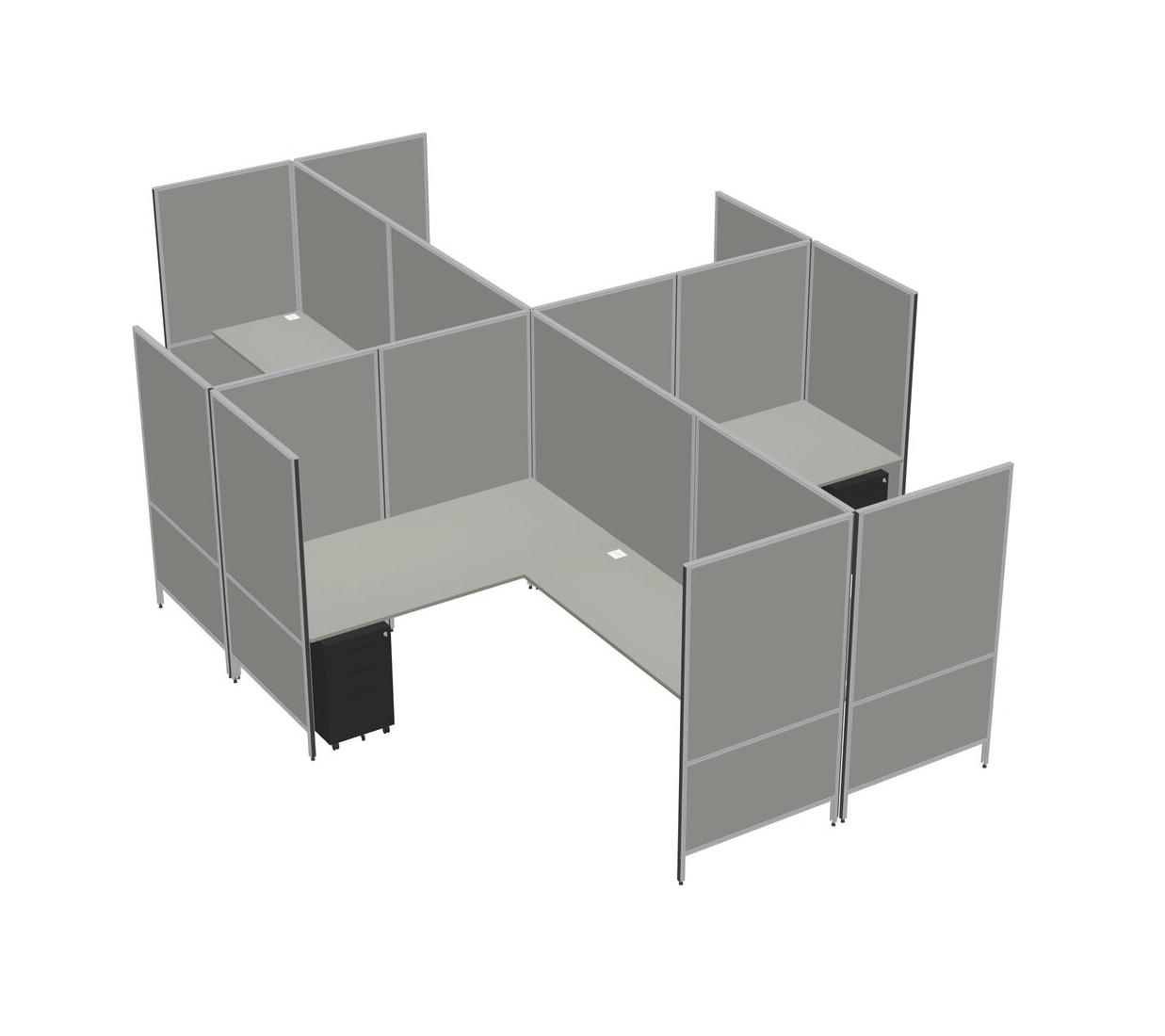 Grey Shadows Modern Modular Quad L-Shaped Panel System + Metal Mobile Drawers