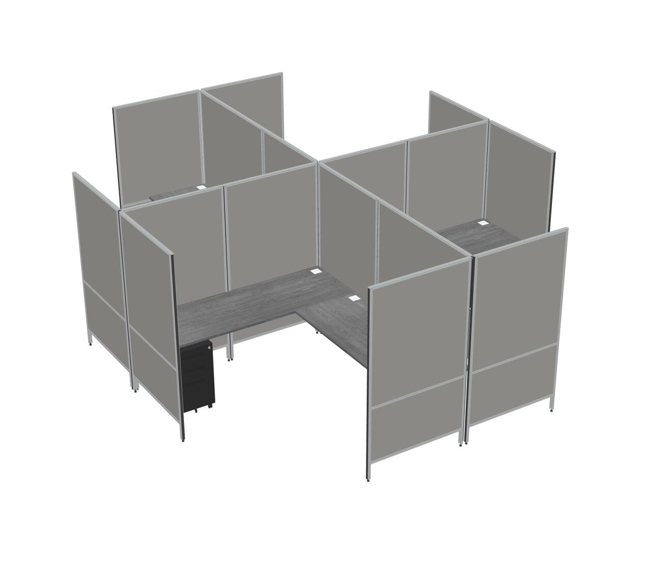 Grey Modern Modular Quad L-Shaped Panel System + Metal Mobile Drawers