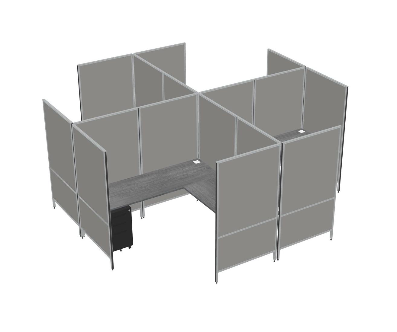 Grey Modern Modular Quad L-Shaped Panel System + Metal Mobile Drawers