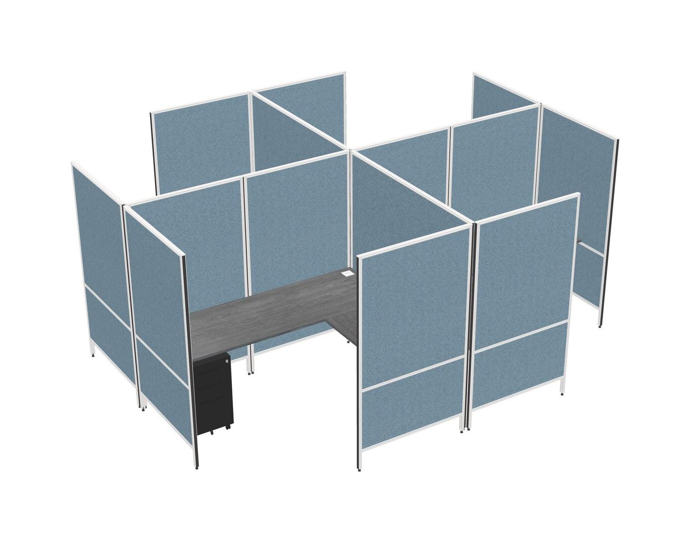 Grey Modern Modular Quad L-Shaped Panel System + Metal Mobile Drawers