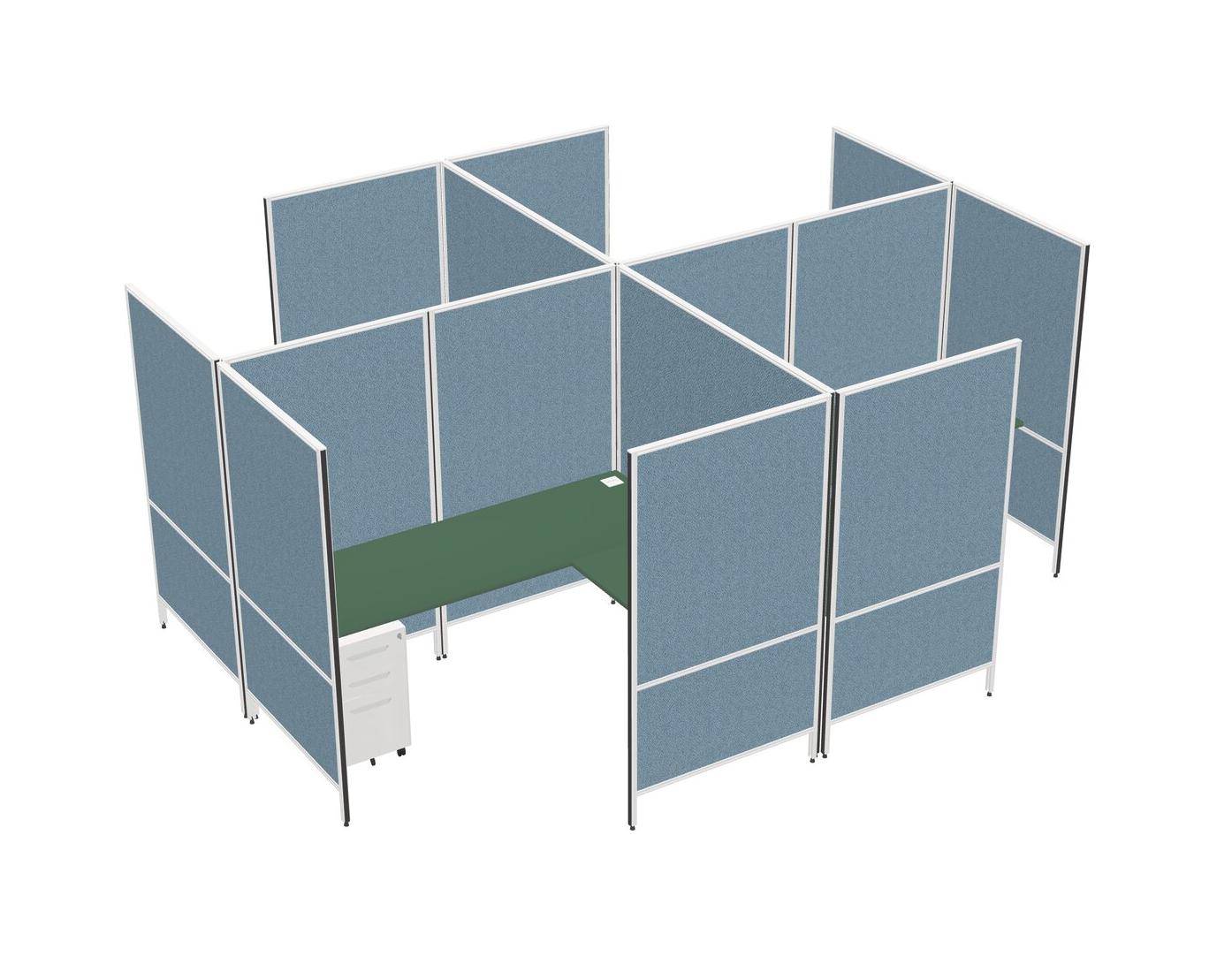Green Modern Modular Quad L-Shaped Panel System + Metal Mobile Drawers