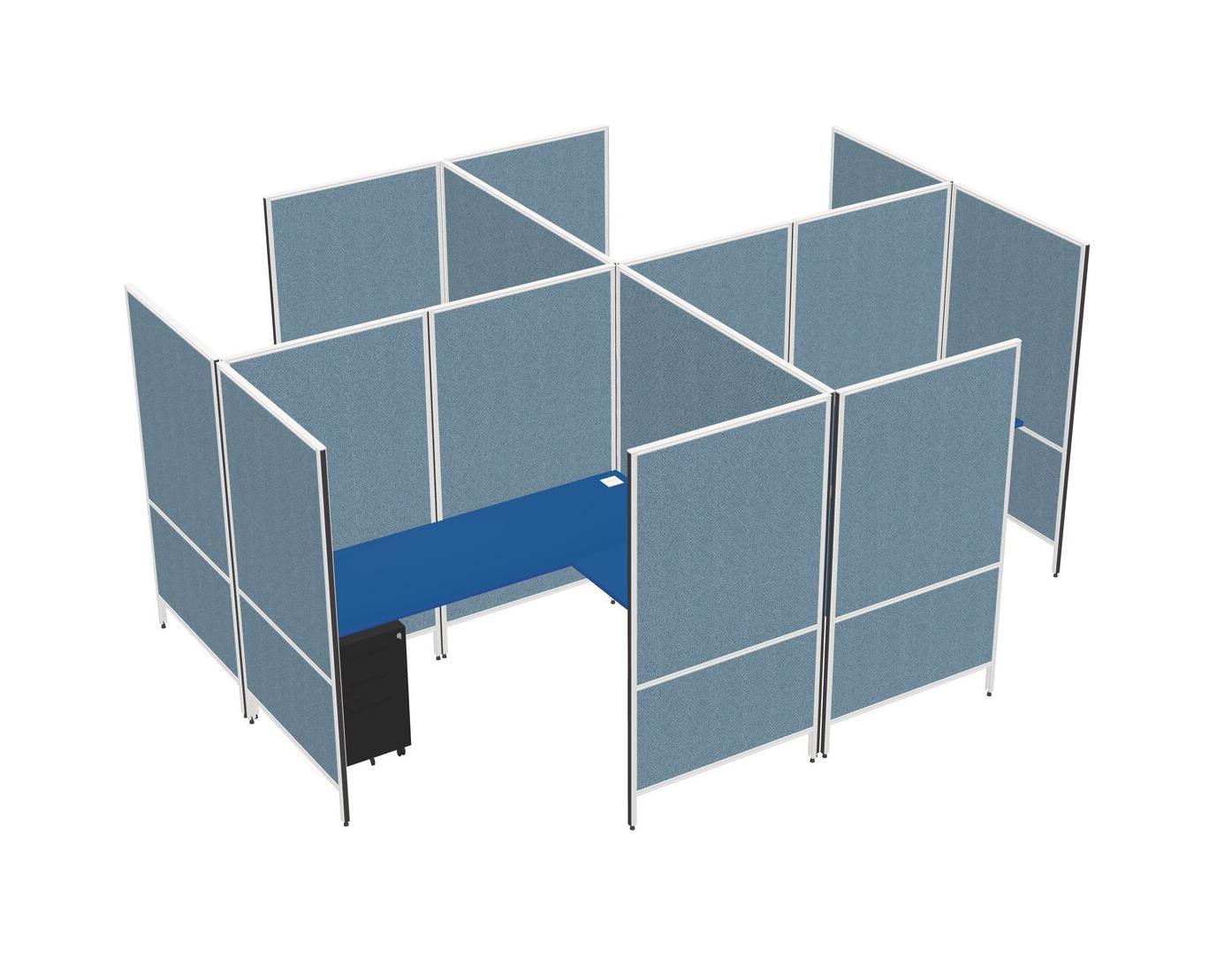 Prism Blue Modern Modular Quad L-Shaped Panel System + Metal Mobile Drawers