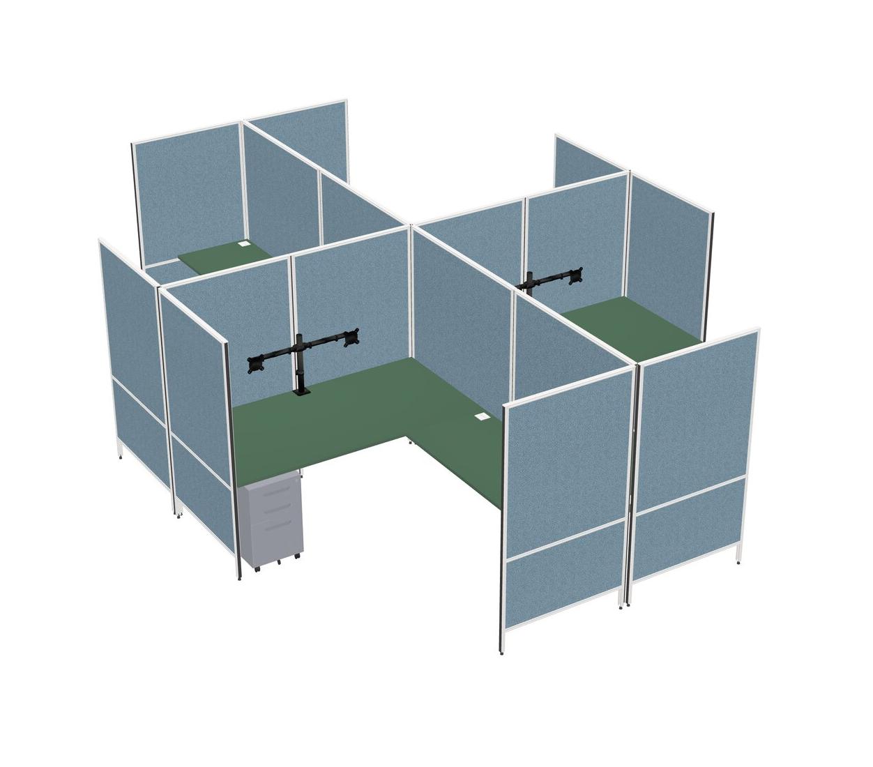 Green Modern Modular Quad L-Shaped Panel System + Metal Mobile Drawers + Monitor Arm (double Arms)