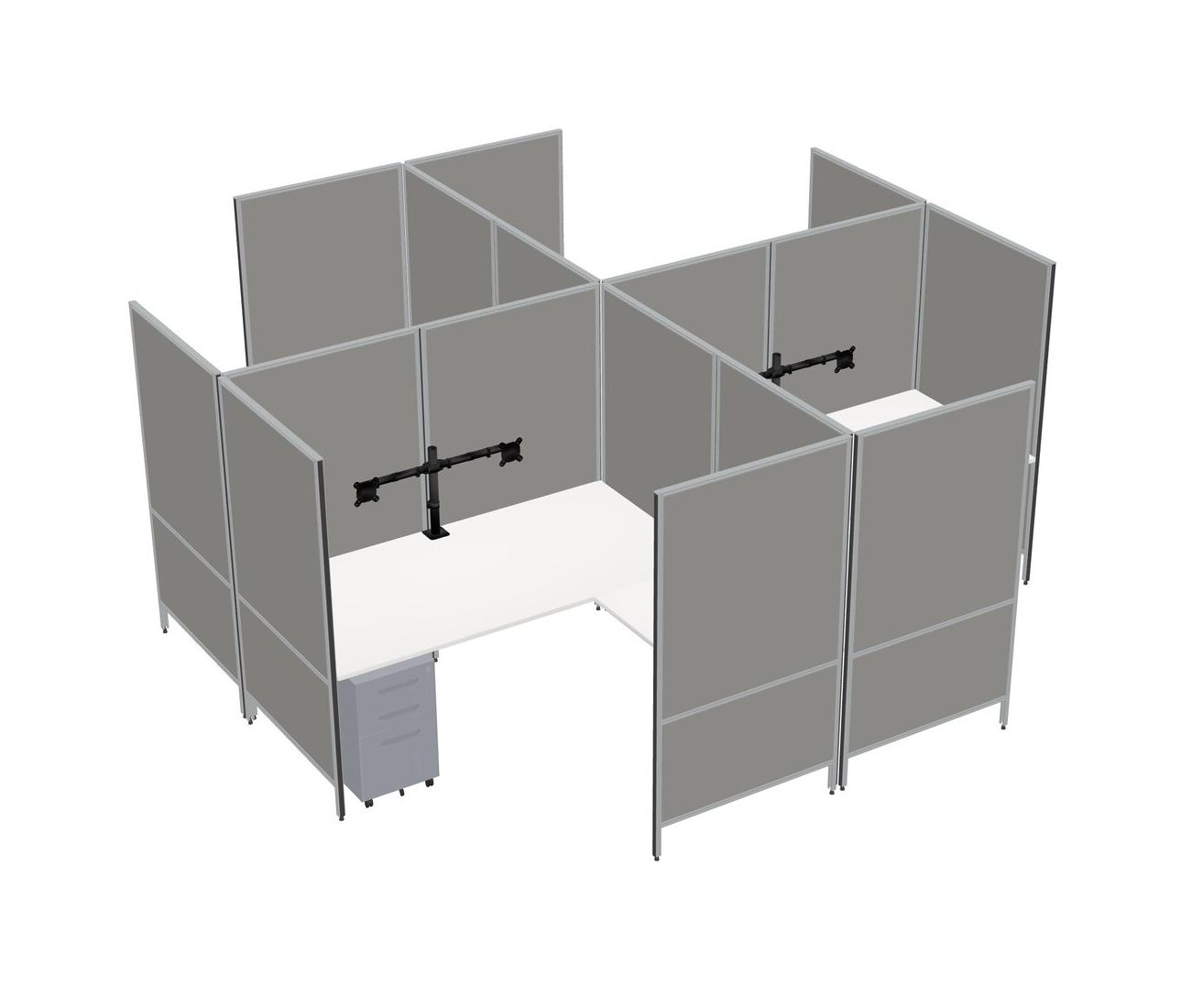 White Modern Modular Quad L-Shaped Panel System + Metal Mobile Drawers + Monitor Arm (double Arms)