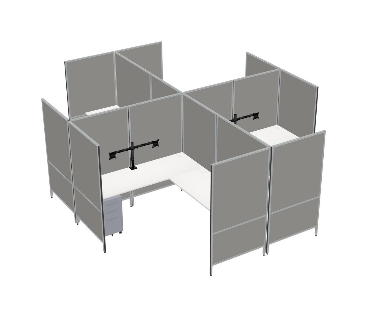 White Modern Modular Quad L-Shaped Panel System + Metal Mobile Drawers + Monitor Arm (double Arms)