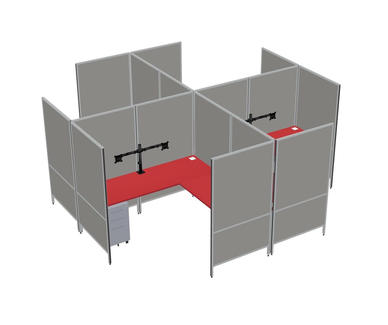 Prism Red Modern Modular Quad L-Shaped Panel System + Metal Mobile Drawers + Monitor Arm (double Arms)