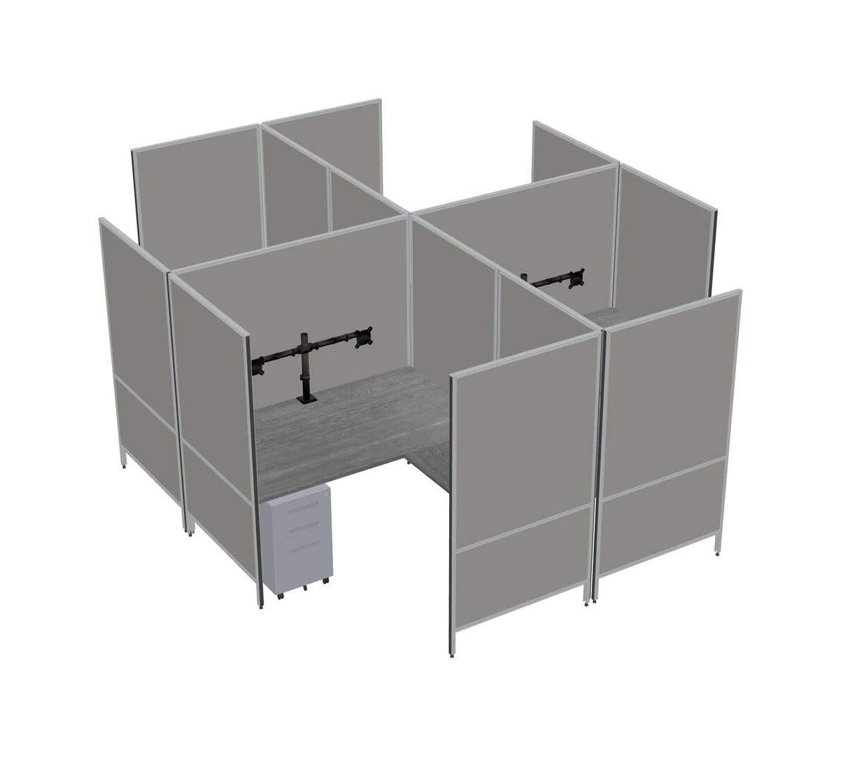 Grey Modern Modular Quad L-Shaped Panel System + Metal Mobile Drawers + Monitor Arm (double Arms)
