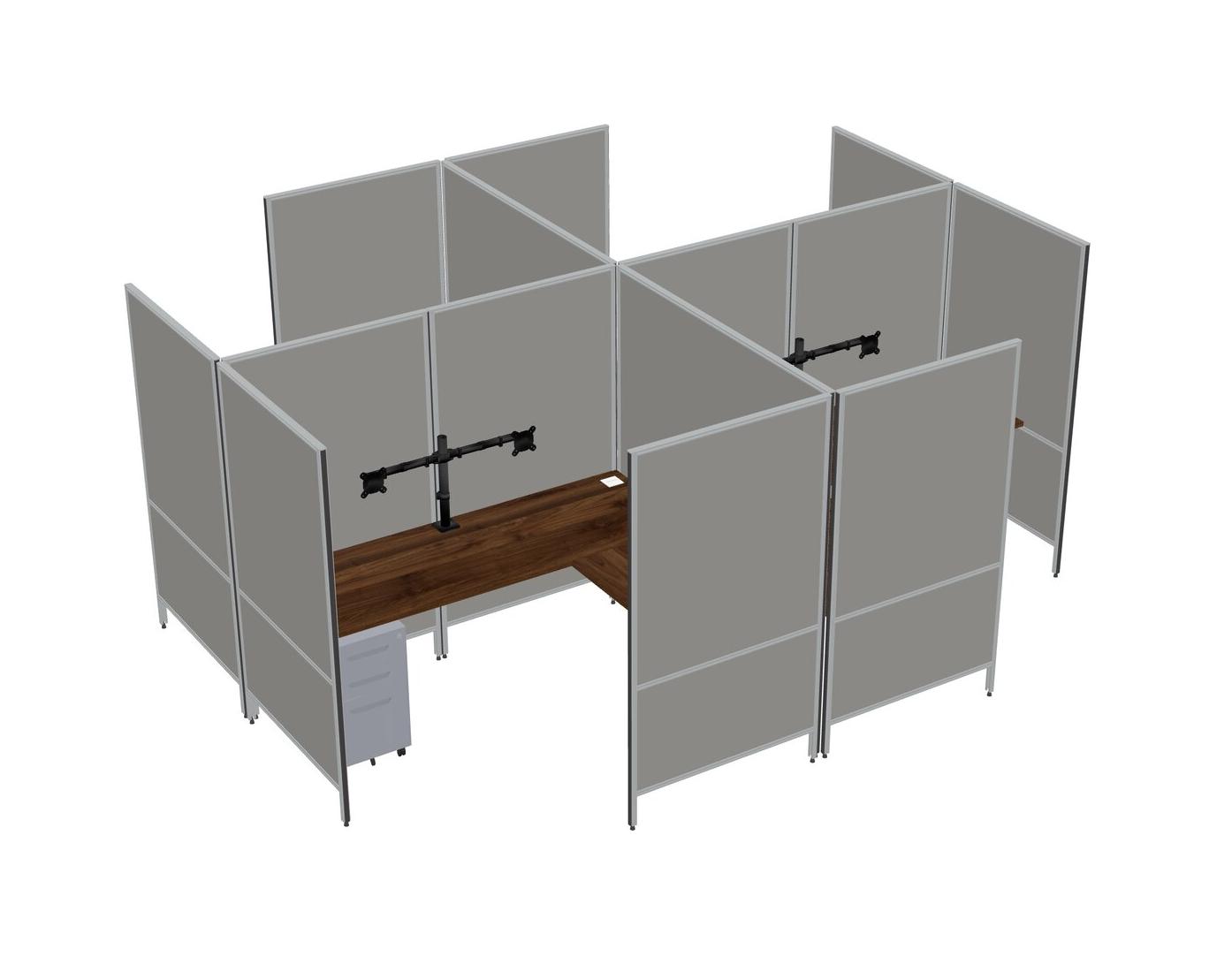 Columbia Walnut Modern Modular Quad L-Shaped Panel System + Metal Mobile Drawers + Monitor Arm (double Arms)
