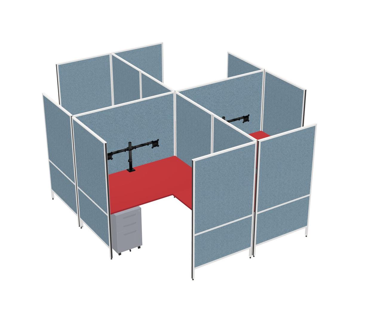 Prism Red Modern Modular Quad L-Shaped Panel System + Metal Mobile Drawers + Monitor Arm (double Arms)