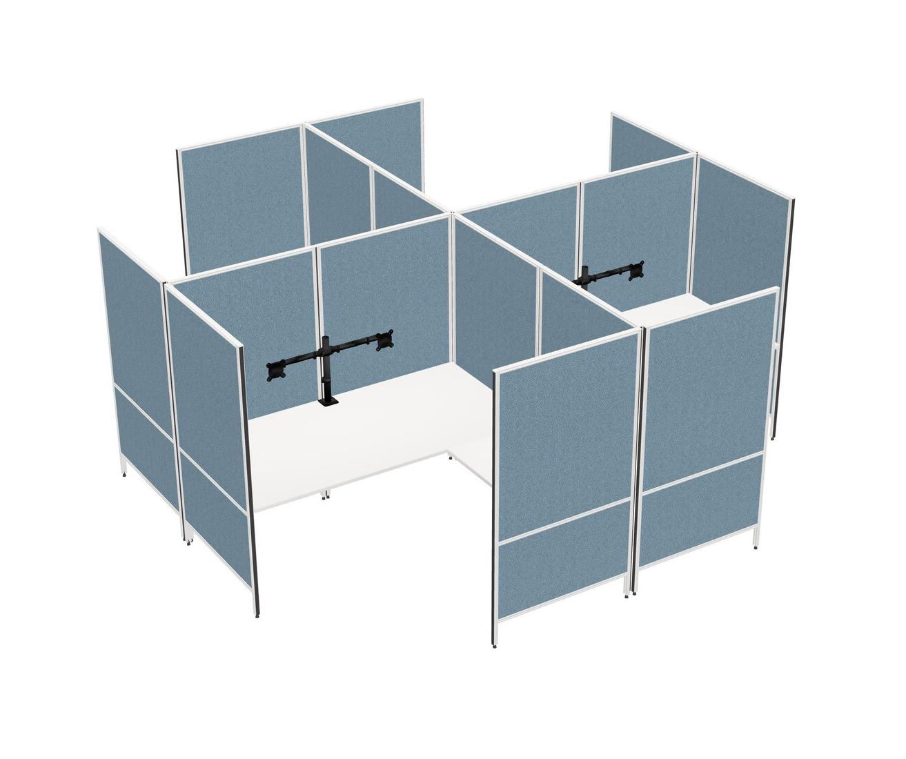 White Modern Modular Quad L-Shaped Panel System + Monitor Arm (double Arms)