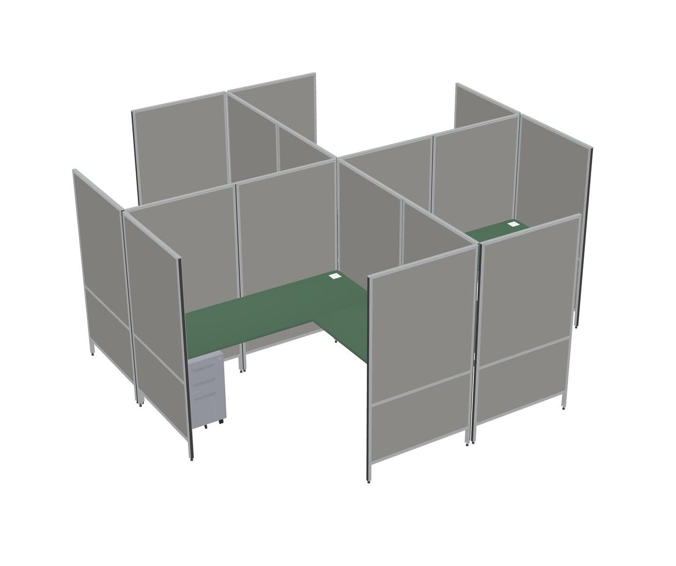 Green Modern Modular Quad L-Shaped Panel System + Metal Mobile Drawers