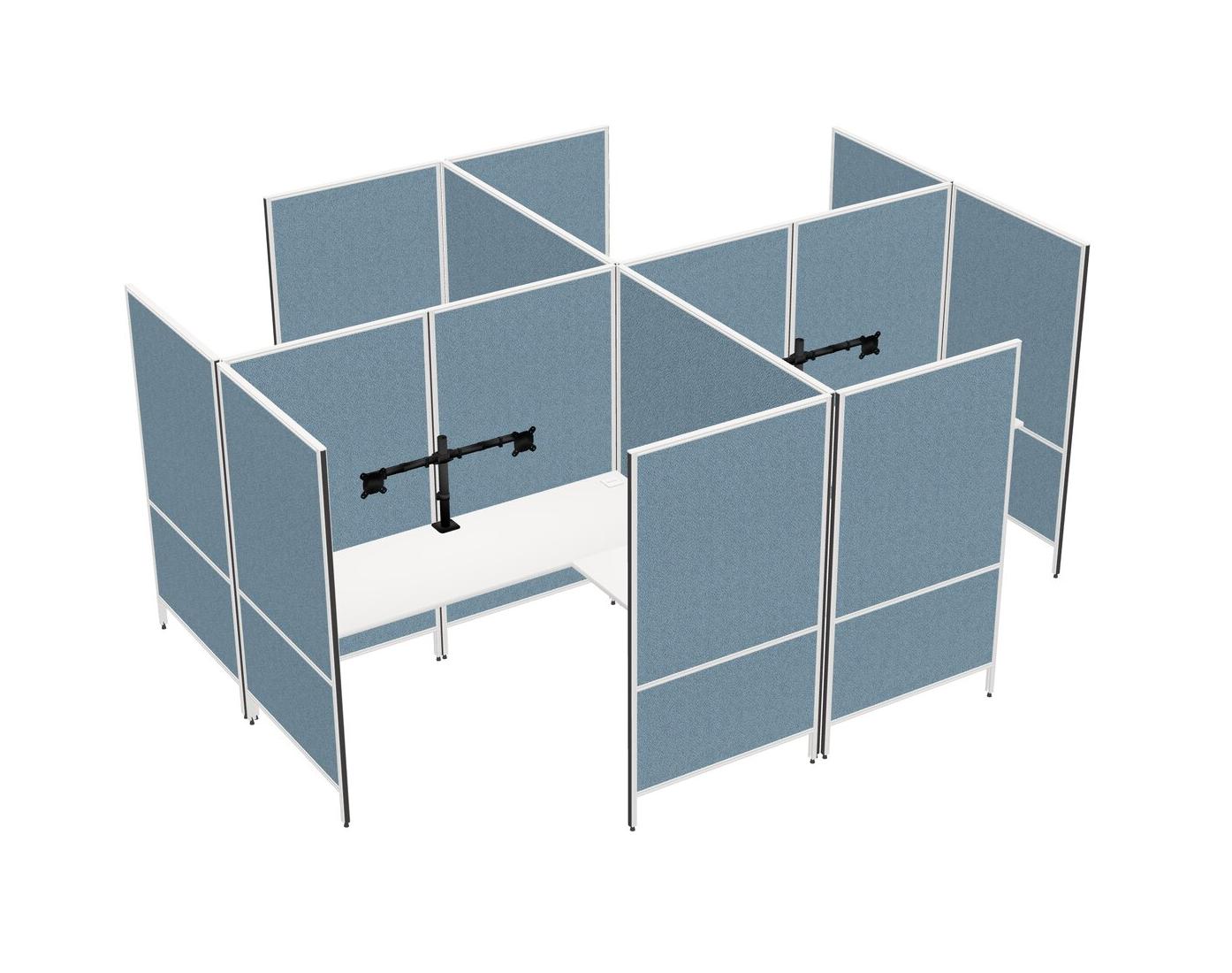 White Modern Modular Quad L-Shaped Panel System + Monitor Arm (double Arms)