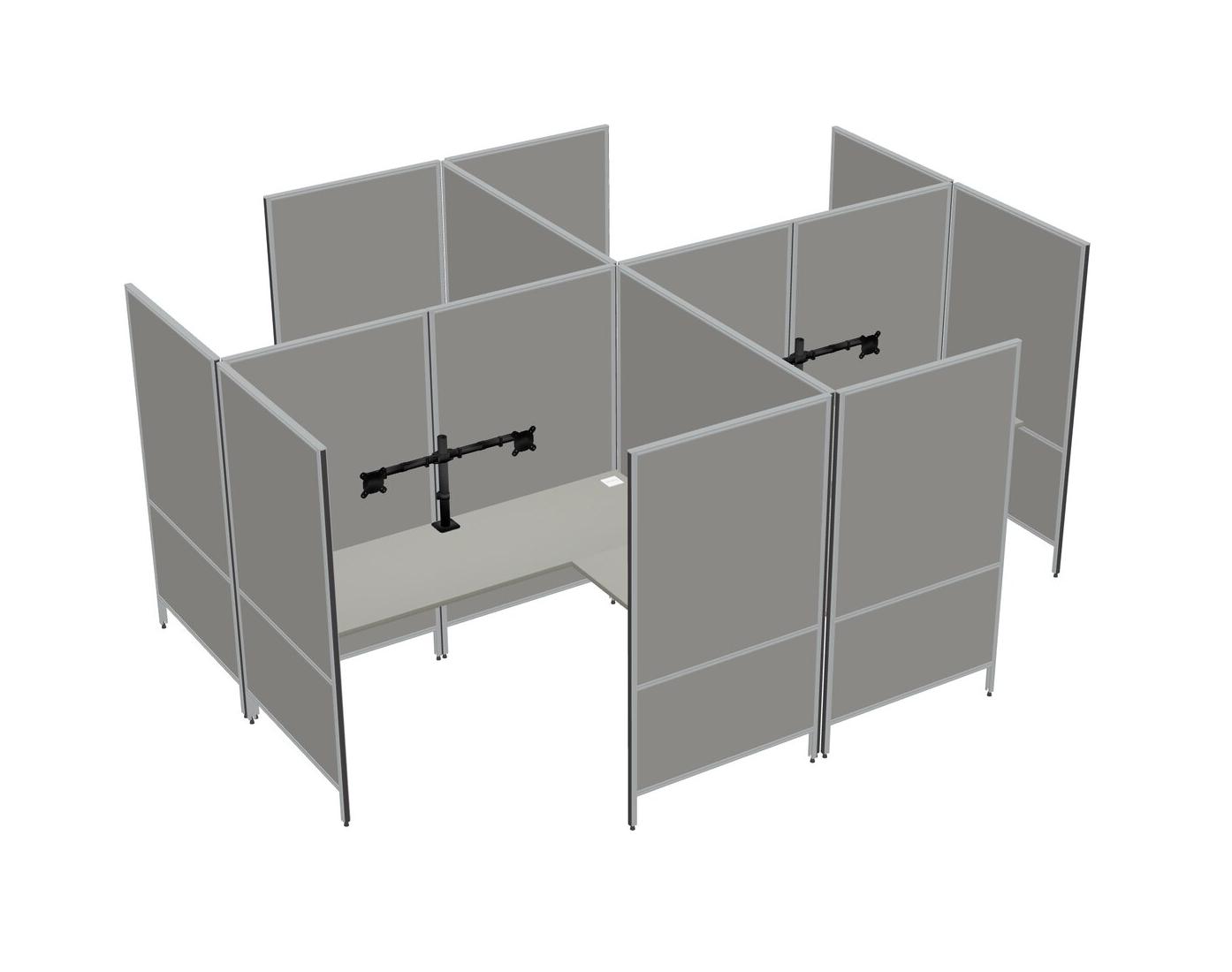 Grey Shadows Modern Modular Quad L-Shaped Panel System + Monitor Arm (double Arms)