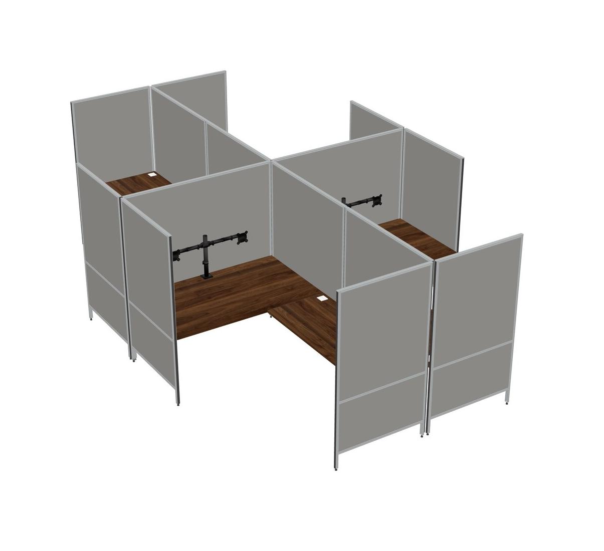 Columbia Walnut Modern Modular Quad L-Shaped Panel System + Monitor Arm (double Arms)