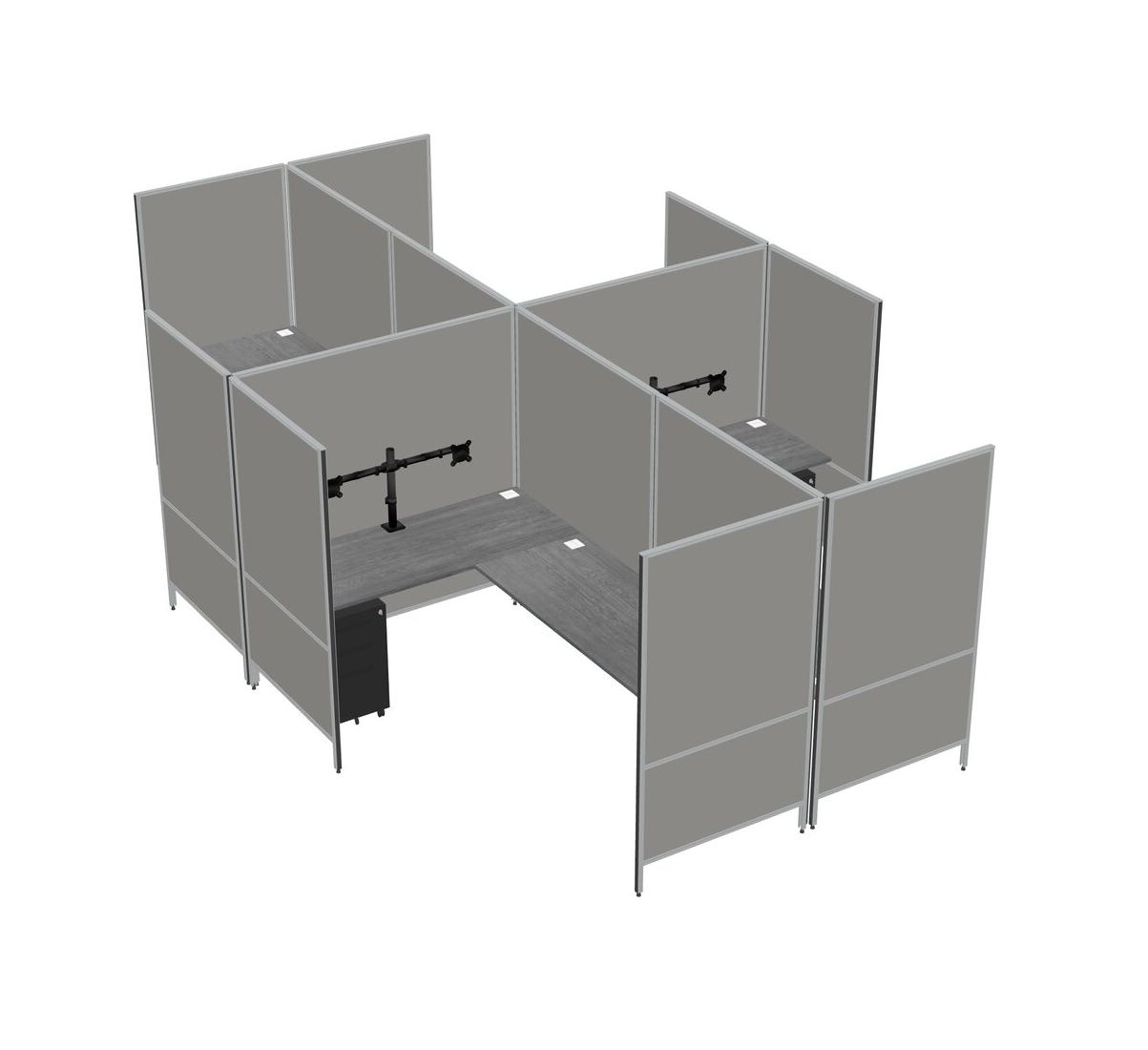 Grey Modern Modular Quad L-Shaped Panel System + Metal Mobile Drawers + Monitor Arm (double Arms)