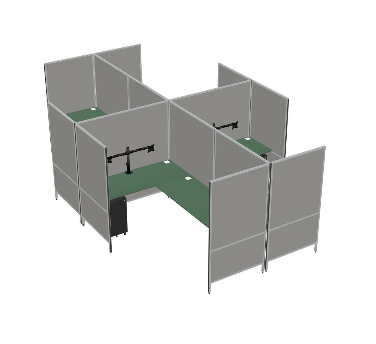 Green Modern Modular Quad L-Shaped Panel System + Metal Mobile Drawers + Monitor Arm (double Arms)