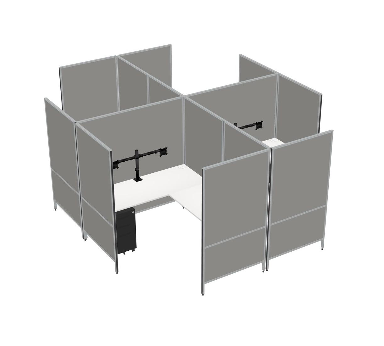 White Modern Modular Quad L-Shaped Panel System + Metal Mobile Drawers + Monitor Arm (double Arms)