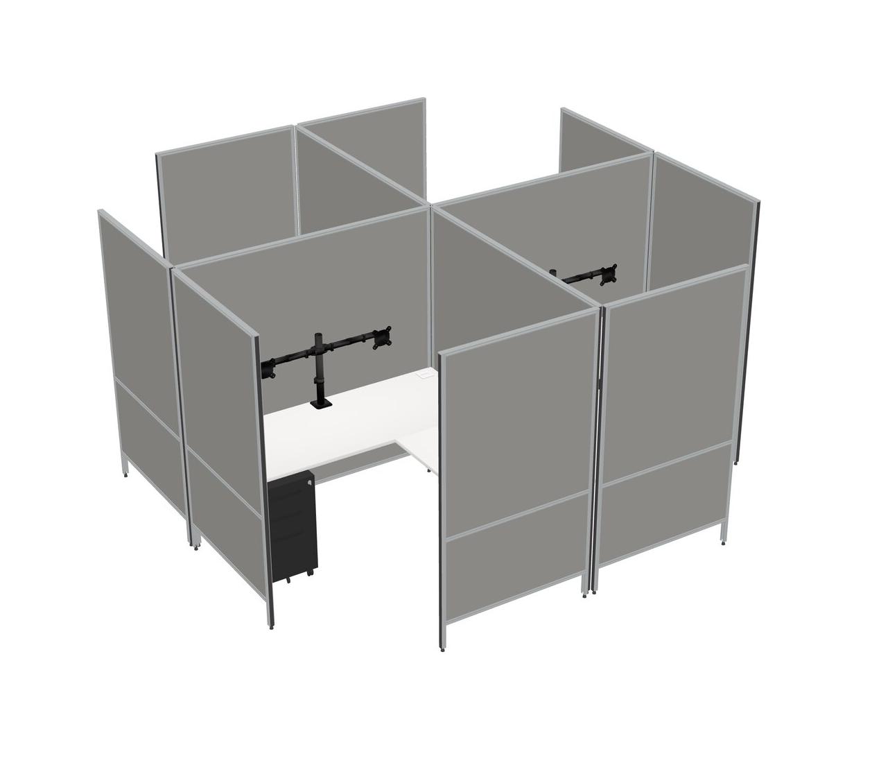 White Modern Modular Quad L-Shaped Panel System + Metal Mobile Drawers + Monitor Arm (double Arms)