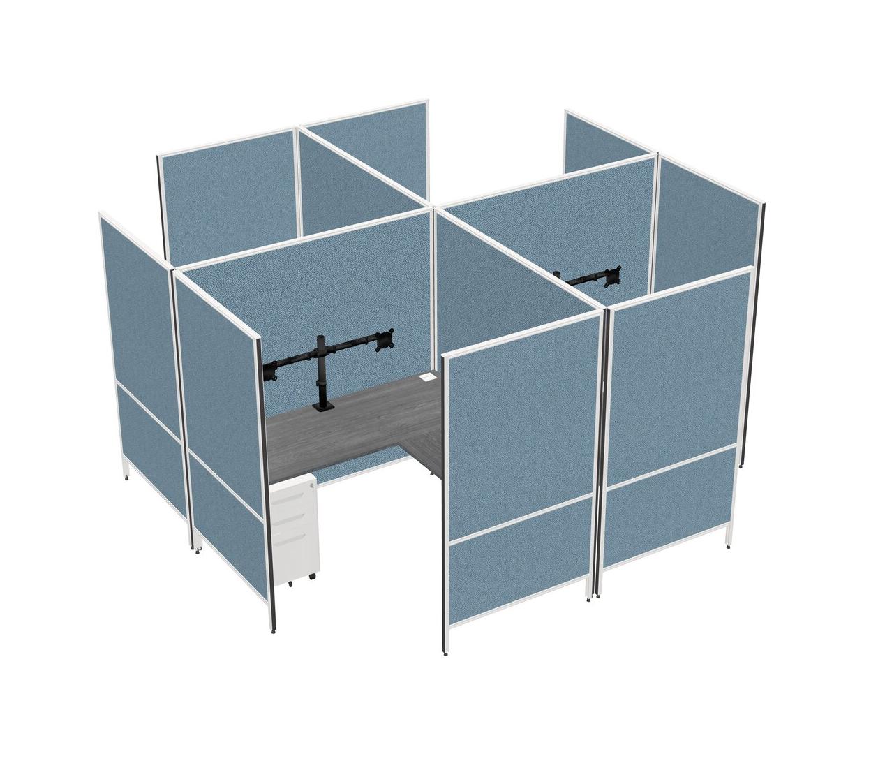 Grey Modern Modular Quad L-Shaped Panel System + Metal Mobile Drawers + Monitor Arm (double Arms)
